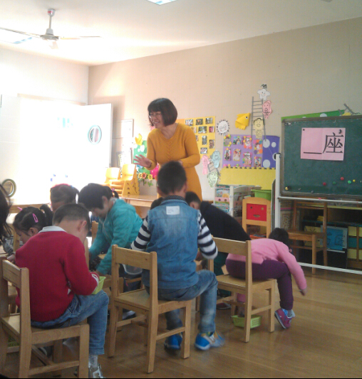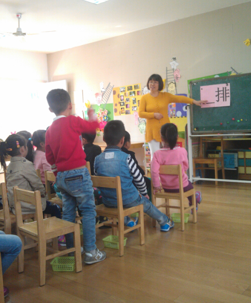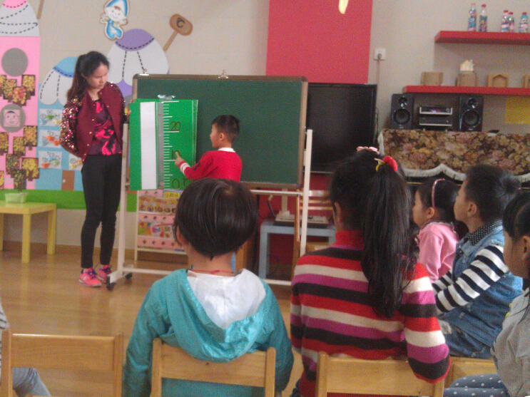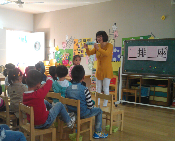 今天徐老师讲课的数学内容就是几排几座,老师先让小朋友们认识这个“排”字,然后知道自己是第几排的小朋友,接着老师再让小朋友认识“座”字,然后知道自己是几座的,接着说出自己是几排几座的,然后小朋友们自己写在卡纸上面。点点动作很快,很快就写好了,并且也知道自己是几排几座的。接着老师让小朋友们拿着自己的卡片和自己的好朋友交换一下卡片,然后坐到好朋友的卡片上写的位置上。这样坐好以后,老师就拿出一本本小人书,在上面有几排几座的号码,让小朋友找出这些小书是在什么位置上的。最后老师也让家长参与到我们的游戏中来,让小朋友找到几排几座,给每一个家长都拿到自己的宝宝送的贺卡了。