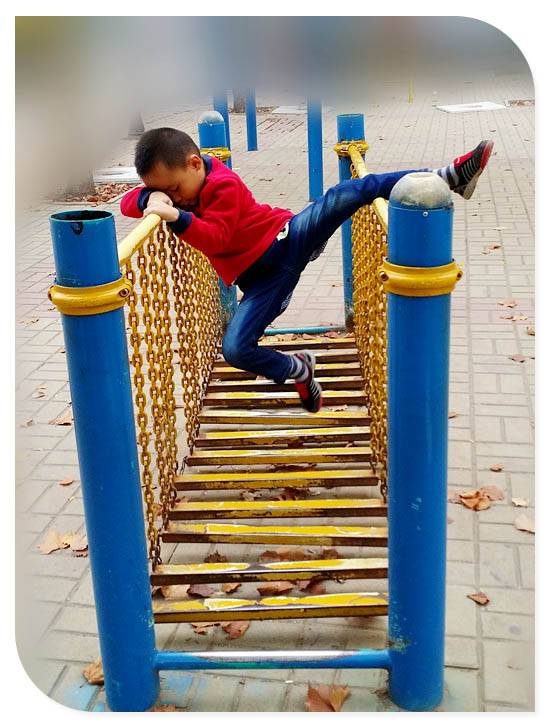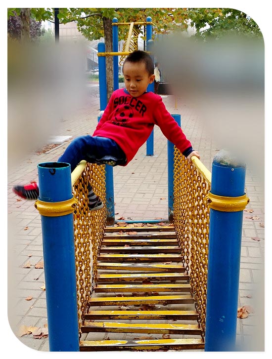 臣的幼儿园也有这个吊桥玩具,每次放学的时候他总要去玩一玩