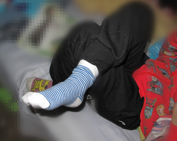 这袜子看起来很小呀,难不成是罐罐的脚比较小,熙熙是大脚,鞋子都要穿34了。