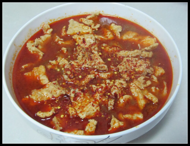 到了家后老公在玩游戏,我说那我给你顺顺菜吧,然后乐颠颠的在厨房开始收拾东西,等一切准备就绪了,就想着要不顺便把青菜煮了吧,这样老公直接可以给我炖肉,更快捷,结果我就把油菜水煮后放入大碗中,接着看看调料,又想着顺手炖好开水,然后把调料加进去,这样老公来了直接给我做就行。可是当我做完这些却发现,我已经做了水煮肉片的8成了。得了,干脆做完吧,反正都到这步了,我就这么一顺手,呜呜,把水煮肉片做完了。 详细说一下吧:首先呢就是把青菜洗干净,然后放入锅中煮一煮,我煮的时间太久,不小心就煮过了,所以这一点一定要特别注意,只要轻轻用开水一过就ok了。 ![]() 然后呢,就是锅中倒入水煮开,要求是几百毫升来着,我给忘记了,所以估摸着来,就多加了点水,怕味道不够,所以又加了点盐和鸡精,接着把调料倒进去,煮开后,再加入切好的肉。 对了,忘记说一步了,就是肉在下锅前需要加入调料包里的什么粉放置一会。 ![]() 大概5、6分钟吧,不过我煮了有10分钟,因为我切的肉比较厚,怕不太熟,所以多煮了一会,等煮好了,就把连汤带肉倒入装有青菜的大碗中。 ![]() 最后一步就是再上面撒一层红辣椒,在调料包中有自带的,所以比较省事。刚开始放了三分之一包,我觉得还好,老公说味道不重,我又加了一些辣椒。看起来是不是和我买的水煮肉片区别不大啊,而且这量绝对足啊。