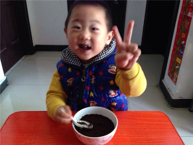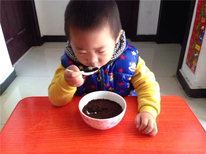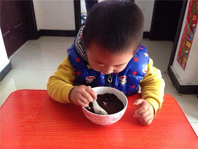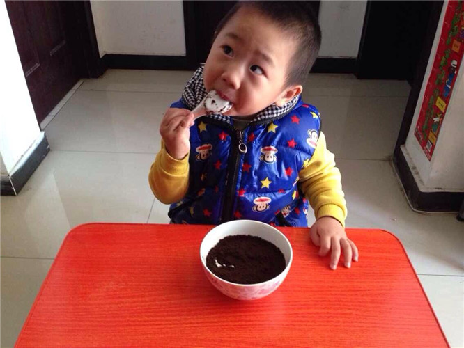 因为昊昊最爱吃奥利奥了,所以我告诉他最上面一层不是土,是奥利奥的时候,昊昊才开始动了吃的心,刚刚吃了几口,昊昊就开始赞不绝口了,真好吃真好吃,还给了妈妈一个“胜利”的手势,似乎是对妈妈最大的肯定啦 ![]()