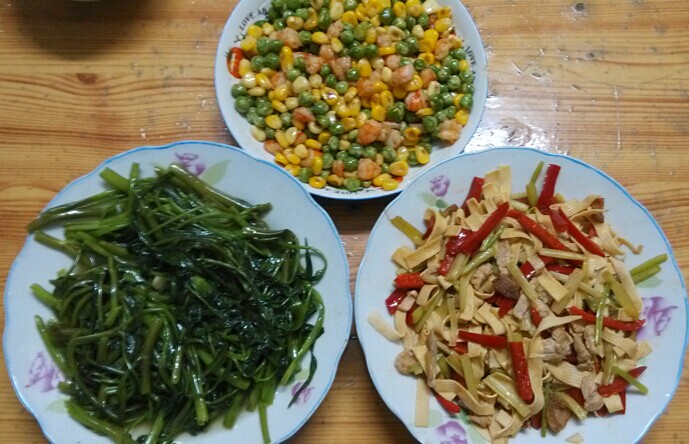 ![]() 可是平时每次煮虾都是宝爸弄的,一般都是红烧大虾,双11那天宝爸要加班,菜还得我炒,可我还没试过做虾呢,有点怕弄得不好吃把这么贵的东西给浪费了,于是在买之前先打开了手机,看看虾的做法,最后看到了一个炒虾仁的菜看着很简单,于是决定买一点回去试试。感觉是在尝试新东西,所以不敢多买,只买了小半斤。怕弄得不好吃把这么贵的东西给浪费了。 ![]() 手机里菜谱的炒虾仁放的是胡萝卜和黄瓜,两宝都不爱吃黄瓜,所以我根据两宝的口味把胡萝卜和黄瓜换成了玉米和甜豆。弄晚餐的时候就按照菜谱的方法动手了。 买回来的活虾,小半斤看着是不是没多少呀。因为还要放其他配料,所以没买太多。 ![]() 先烧开水把虾焯一下,然后再剥皮切成小颗粒,这样适合孩子吃。其实也可以剥皮以后整只直接炒,只是这样的话小宝每次吃一整只到了嘴里总是要嚼很久还吃不下去,切成小颗粒就非常方便了。 ![]() 切成小颗粒的虾仁,还有剥好的甜豆和玉米 切好的虾仁要先放一点料酒和盐腌15分钟左右,然后再放一小勺生粉搅拌均匀,这样虾仁的口感会更好。 ![]() 先把虾仁入油锅翻炒一下,有点变色后捞出。 ![]() 再炒甜豆,因为甜豆比玉米要难熟一点,所以要先炒一下,再把玉米倒入翻炒,再放点盐。 ![]() 最后再倒入翻炒过的鲜虾仁,翻炒后放入鸡精等调味料。 ![]() 新鲜美味的清炒鲜虾仁上锅了,是不是看着很清淡啊,不过味道很不错哦。照片有点没拍好,黄色的玉米都有点变色了,可能是用了反光灯的原因。看着虾仁有点少呢,下次记得再多买一点。 ![]() 顺便再晒一晒这天晚餐的全家福,除了清炒鲜虾仁以外,还有芹菜豆皮炒肉,再加一个空心菜。这天刚好宝爸加班,所以就是我们娘三个的晚餐了,都是宝贝们最爱吃的菜。 话说现在吃空心菜的季节已经过去了,市场上也很少卖的了,但是这种带绿叶的蔬菜里,两宝最喜欢吃的就是空心菜了,所以那天刚好看到超市有就买了一点,虽然过季了,但吃着味道还是和原来的一样,挺不错的。不过空心菜带凉性,现在天冷了不能多吃,偶尔吃一次还行。炒的时候要放点带热性的大蒜综合一下。