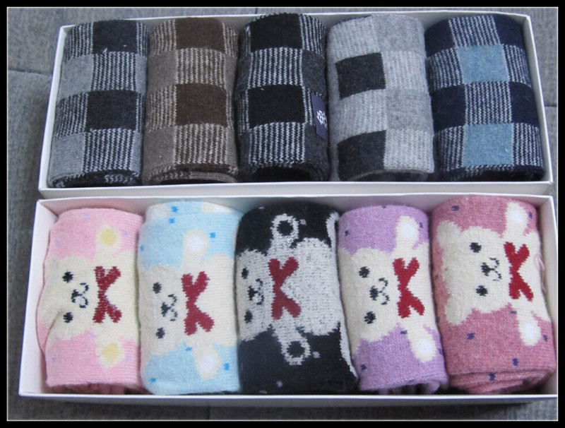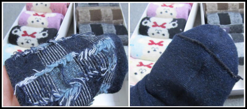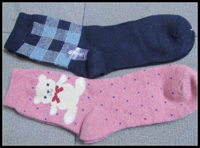 现在已经恢复原价了,女袜是39元一盒,双十一的价格是29一盒,最优惠时也是17.8元,这样我15元买下来一盒,30元两盒,也是趁着双十一才有这么大的优惠呢。这袜子说的是纯正原生态兔羊毛袜,说实话,我到现在也没弄明白,到底是兔毛还是羊毛,老公笑着说哪能真是兔毛或者羊毛啊,否则不得赔死。说的倒是也很有道理啊,可是看看这袜子的质量,还是不错的。 Aric可是气坏了,为什么妈妈有新袜子,爸爸有新袜子,就他没有呢?老公把责任推给了我,说是妈妈买的,不关他的事,我晕,早知道给Aric买袜子不给你买了。我告诉Aric,正好赶上大人的袜子有活动,等过两天给你买两盒,比爸爸的还多。Aric听过后也就没什么意见了,毕竟我的这个大熊的袜子还是Aric挑选的呢,不过只要我想到穿着这么可爱的袜子,就一阵脸红啊,我喜欢成熟型的好吧。 ![]() 每盒5双袜子,我的是Aric选的,老公的是方格我选的。 ![]() 兔羊毛袜,很好奇到底是兔毛呢还是羊毛呢? ![]() 看着质量还是不错的,加厚型,而且做工也比较精细。 ![]() 这貌似是中筒袜吧,我不习惯在冬天穿短袜,这个倒是也蛮合适,只是感觉还是偏高了一点。
