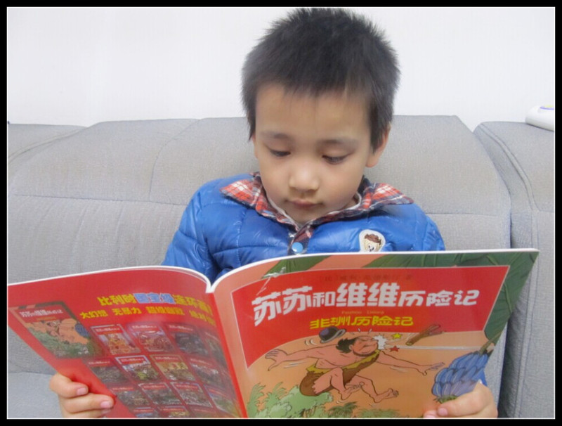 看这本《苏苏和维维历险记之非洲历险记》,使得我和Aric看的捧腹大笑,无论是图画还是对话内容,总让人感觉特别的有趣。小孩子就是这么简单,他能看出来这个故事的意义,还能自己找到乐趣,并从中又学到了很多丰富的知识,以及发挥自己的想象力去幻想、自己去来一场虚拟的历险旅程。依旧是一整本一个故事,很长,但是却不会让人感觉乏味,反而在读的时候就会忍不住去想接下来的情节,又是怎样的历险。
