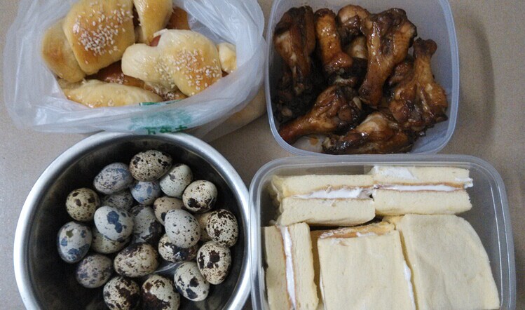 ![]() 周日出去玩,想着肯定又是在外面一整天,那该准备些什么吃的呢,以前大部份时间出去玩都是带些零食,很少自己弄东西。而好朋友经常是自己做的炒饭之类的,所以这次我也决定自己准备了。刚好星期六还有时间做准备工作,上午带宝贝们去参加了一个亲子早教的美妈沙龙的活动,下午一回来趁宝贝们午睡的时间,就计划着自己做点面包了。 ![]() 面包虽然是现做的好吃,可是需要发酵的过程,早晨起来做是根本来不及的,所以还是打算在前一天的下午做好。有很长一段时间没做面包了,和蛋糕相比,我更喜欢做蛋糕,因为面包揉面的过程真的是挺痛苦的,看着烘焙群里的高手竟然能把面团揉成手套膜,真的是很佩服,话说我做过多次都没有一次能揉成手套膜,不过虽然没办法揉到膜的程度,但做出来的面包味道还是挺不错的。这次家里刚好有刚买的现成的热狗肠,所以就试着做了些卷热狗肠的面包,第一次卷,看相不太好看啊。 ![]() 家里没有黑芝麻,只有白芝麻,烤出来照样香喷喷的,宝贝们特别喜欢卷了热狗肠的面包,刚出炉还很烫就等不及要吃了。 ![]() 剩下的几样就都是星期天早上起来准备的,因为要做蛋糕,所以必须得早起,平时起得最早的时间都是7点左右,这次是把手机的闹钟调到了6点,结果晚上睡觉总觉得心里装着事,睡得不是很安稳,总想着要早起做事,所以后面是闹钟没响我就先醒了。 ![]() 星期天的早晨,一起来就把前一天晚上腌好放冰箱的鸡腿放进烤箱,然后烤鸡腿的空闲我就开始倒腾蛋糕了。 ![]() 本来一开始打算做奶油蛋糕卷的,可是后来临时想出来一主意,不打算做蛋糕卷了,因为想着等下要出门,做蛋糕卷需要冷藏,估计时间不够呢。最后直接把蛋糕从中间分成两半,然后在一半上面抹上奶油,再把另外一半重叠上去,然后再切成一块块的蛋糕块了。 ![]() 在做蛋糕的时候,厨房也没闲着呢,锅上在煮着鹌鹑蛋,毕竟时间有限,还是需要同时操作呀。我一会儿给鸡腿刷点蜂蜜,一会儿又去称做蛋糕的材料,再不然就去厨房看看煮鹌鹑蛋的火候,真是忙得不亦乐乎,不过没有两宝贝的打搅,自己一个人做得也是有条有理的。一个小时过去了,香喷喷的鸡腿烤好了,美味的鹌鹑蛋也熟了,剩下的就是还在烤箱里的蛋糕了。 这个时候已经7点多了,满屋子的香味呢,在我专心忙着的时候,两宝贝突然就从房间里穿着睡衣跑出来了,我说你们怎么醒了,大宝说我闻到香味了,所以就醒了。一说完就迫不急待的去刷牙洗脸去了,等着吃妈妈准备好的美味早餐呢。 ![]() 因为准备的份量足够多,吃完早餐还有很多,足够我们外出游玩的野餐了。这次我们就不用再带零食了,只买了一些水果就可以了。