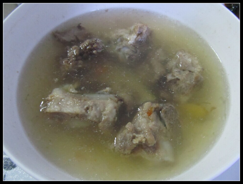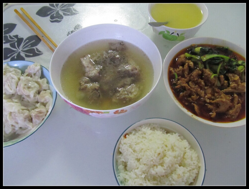 昨天老公、Aric去奶奶家,没人管我,就想着自己随便吃点吧,可是又不想亏待了自己,打电话向老公申请水煮肉片。或许在自己妈妈家老公心情倍好,很快就同意了。高高兴兴的打了电话点了水煮肉片,不要葱花香菜,少辣,一会过去拿。感觉应该差不多时间了,就随便套了件衣服去四川酒家拿回了水煮肉片。谁知老公又打来电话说正在路上很快回来,好家伙,这回不能偷吃了,赶紧想办法给那父子俩做饭啊。 因为我吃的是水煮肉片,配米饭最好吃,虽然老公不爱吃米饭,不过还是不想再去买馒头了。不过既然让老公吃米饭,还得做点汤比较好。从冰箱里拿出一些排骨来,沥过了血水,开始煮排骨,我做的比较简单,直接清炖,不过加了些葱段和姜段,煮了很久,香味也出来了,再加入盐和鸡精调味。老公的清炖排骨就这样做好了,我自己也没有在厨房呆的时间过久,毕竟加入了排骨葱姜,让锅里的排骨自己炖就好。