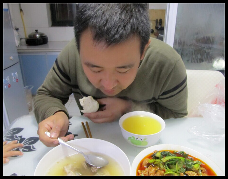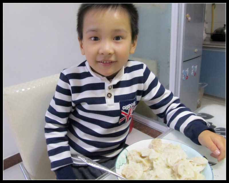 Aric呢,干脆煮馄饨吧,小家伙现在特别爱吃我包的馄饨,一次能吃15个呢,每次我都会提前包好,然后用袋子分好,每个袋子里或者装15个,或者装25个,或者装40个,以防老公和Aric吃,或者两个人都吃。清水煮过了馄饨以后,在盘中加入炖好的排骨汤,然后加一点醋,再加一点胡椒粉,最后加点盐和鸡精,把煮好的馄饨放入盘中即可。因为Aric不吃辣椒,我很想让他吃点辣,所以才加的胡椒粉,在这个季节比较合适。 Aric的馄饨,煮了15个,排骨汤装的馄饨,挺好吃的。 ![]() 我的水煮肉片 ![]() 给老公炖的排骨,不过汤已经装入Aric的馄饨和米饭中,所以显得比较少。 ![]() 忘记说了,还单独给老公煮了粥,是他上次在婆婆家带的玉米粉煮的,老公很爱喝。 ![]() 可惜米饭终究还是没被老公吃,他在冰箱里拿出了我提前备好的馒头热了热,喝着排骨汤,也蛮滋润的。 ![]() 最近小家伙胖了很多,看看他的饭量就看出来了,一大盘的馄饨,小家伙一顿吃个精光哦。 ![]() 本作品未经作者许可不得转载,转载请征求作者意见。擅自转载使用,将保留追究其法律责任的权利! 评分记录