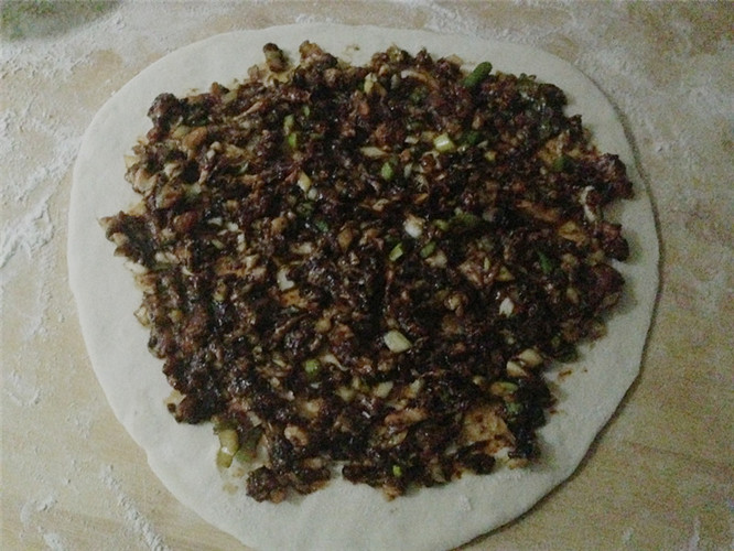 将醒好的面揉成团擀成薄薄的面皮,这个厚度和薄度一定要掌握好,太薄容易磨破皮,太厚就体现不出肉的味道了