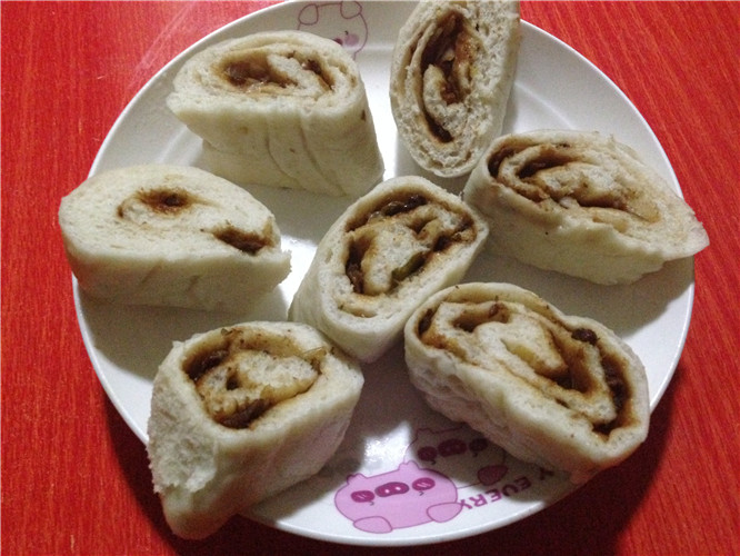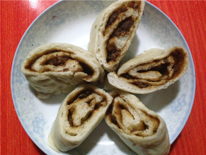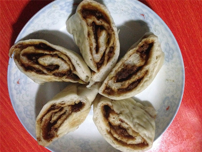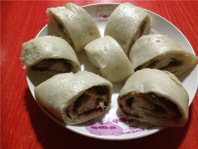 这肉卷做的太赞了,如果里面是豆沙,我会爱死的,哈哈