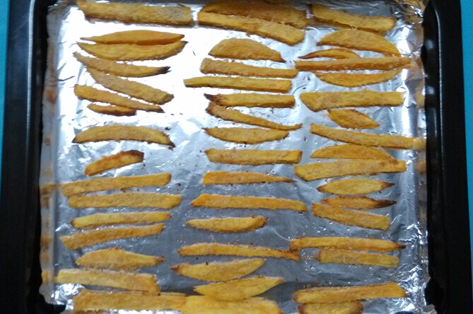 ![]() 对于红薯,以前我们都是煮着吃蒸着吃,后来有了烤箱就偶尔还会烤着吃,方法简单还美味,直接洗干净扔烤箱,过不了多久就可以吃到香喷喷的烤红薯了,多好呀。红薯虽然体积大、水分多,但是热量却不高,在冬天来说还消化慢,吃后有饱腹感。红薯还是非常有营养的食物,里面含有的淀粉和植物纤维还可以保证人体的血糖稳定,不仅适合糖尿病人群,更适合咱们普通人,而且现在还是吃红薯的季节,价格便宜又美味。 ![]() 这道椰蓉烤红薯条做法其实很简单,昨天买菜的时候刚好看到有红薯,让我一下子想到了收藏的这个方法,于是买了几个回来试试。 这是削了皮切好的红薯条,一共是3个红薯的量,两个小点的,一个大的,刚刚上专的照片里有整个红薯的照片,可是插入后怎么也显示了不,所以就直接免去了。 切的时候注意要大小要均匀一点,要不然到时候烤的时候有的熟了有的没熟。 ![]() 食谱上是说加入橄榄油和椰蓉混合,而我没有橄榄油,直接就用了炒菜的玉米油了,味道也不错。 先把油倒下去搅拌红薯条,再倒入椰蓉搅拌均匀。 ![]() 然后在烤盘中垫上锡纸把红薯条摆放整齐 ![]() 放入预热好的烤箱,180度20分钟左右。这是食谱上提供的,而我的烤箱来得慢一点,所以我多烤了几分钟上。 ![]() 好吃的椰蓉烤红薯条新鲜出炉了,这一盆红薯条一共烤了两烤盘,而且烤完以后严重缩水了,只有一小盘子了。 ![]() 味道比直接烤的红薯要好吃很多,粉粉的甜甜的,还带着一股椰香味。 ![]() 看看我家小宝的吃相就知道味道不错了。小家伙平时可是不怎么喜欢吃红薯的,不过对于这盘烤红薯条倒是吃得很欢。真的是做法简单,吃起来美味呢。 ![]()