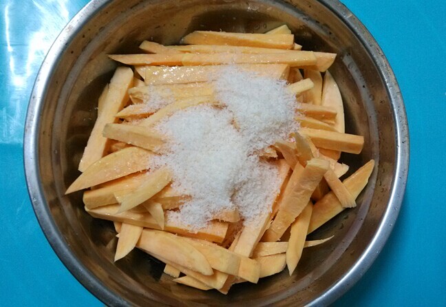 话说我之前买的椰蓉,除了很久之前做过一次糥米糍用了一些以外,就一直派不上用场了,还剩下大半包呢,虽然说离保质期还有一段时间,可开封过的东西还是想着看能不能尽快用掉吧,免得浪费了可惜。刚好上周末在做面包搜食谱的时候无意中发现了这道椰蓉烤红薯条,就随手收藏了起来,想着改天有空的时候就试试。