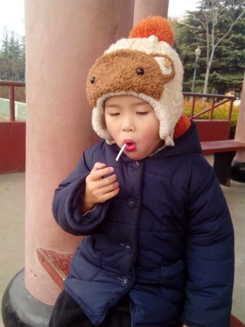 这天气真是有些冷,尤其是湖边,风比较大,一会儿我就冻的要流鼻涕了,跟孩子商量往回走吧,他先是没有同意,说还想再玩儿会儿,过了一会儿,才主动跟我说:“妈妈,我们走吧!”然后他就边走边吃着棒棒糖,走到一群大象的雕塑旁,一屁股坐在其中一头的象鼻子上,跟我说:“妈妈,给我拍个照吧”,我就又给他拍了几张,要不是他说,我都没有想到要拍他和大象的合影呢! ![]() ![]() ![]() ![]() ![]() 棒棒糖是最爱,只要是吃糖,那吃的可高兴啦! ![]() ![]() ![]()