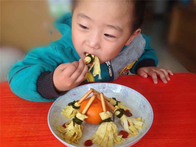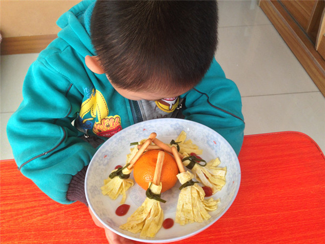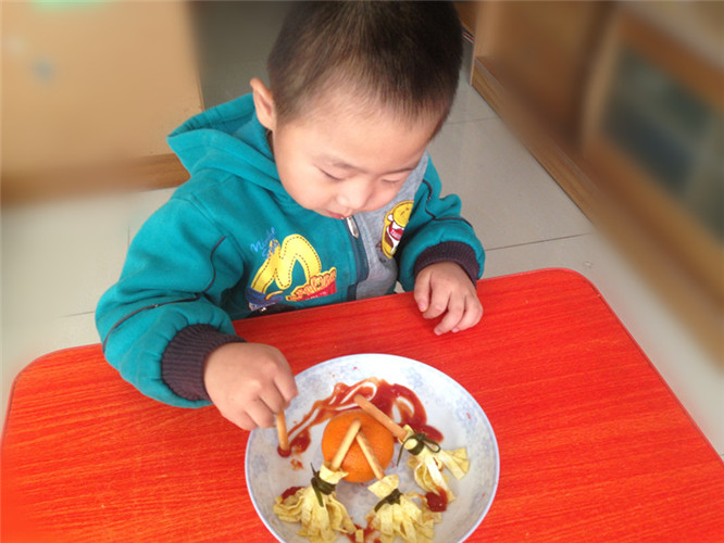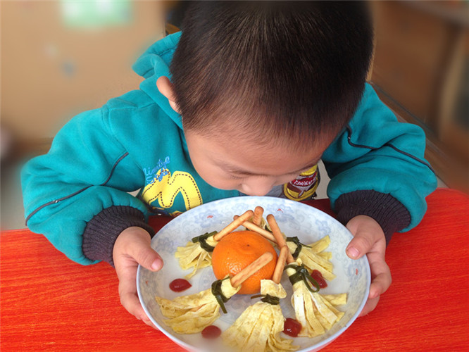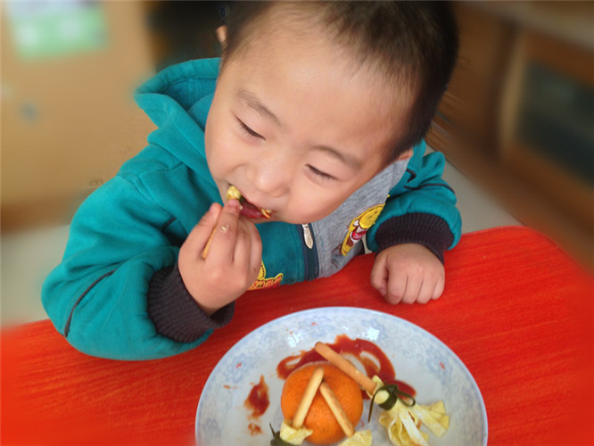 看着昊昊吃的那么嗨,征求了他的意见,我也尝了一个,别说,沾上番茄酱还真是不错,昊爸看我们吃的那么香,竟然控制不住也来尝了一个,连声称赞!一共六个,最后被我们三个瓜分了,昊昊吃了4个,爸爸一个,妈妈一个,可是最后竟然剩下一个空盘子,桔子去哪里了呢!原来昊昊最后连桔子也吃进肚子里去了,这家伙儿看来是胃口大开啊!再一次刷新光盘行动的记录!