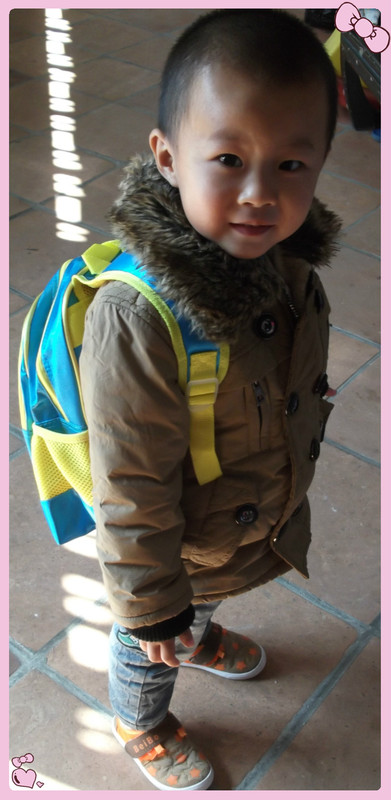 由于乐乐还没有入园,不敢拿回去给乐乐背,怕婆婆说什么来着。现在乐乐也三周岁了,很快也要入园了,每次回去都陪他学习陪他玩耍,乐乐是对学习也越来越感兴趣,我就想着干脆把书包拿回去给乐乐用吧,让他适应适应这种上学背书包的感觉!我还特意把在地带中的试读书放几本在里面,背起来还是有点分量哦!