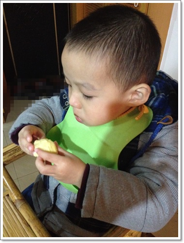 ![]() 一直想做酸奶蛋糕,就是想找到一种消耗酸奶的方法,要知道在家自制酸奶,买的易极优酸奶粉一次就要做出1L的酸奶,我们家的酸奶销量,吃一周都吃不完,浪费。看了网上的方子,酸奶蛋糕做法简单,跟戚风类似,但是口感更好,可是要用到小麦淀粉,家里没有啊!猛然间,想到上次做冰皮月饼还有一袋小麦淀粉没有用掉,既然都是淀粉,应该效果差不多,就试试看吧! 不过因为我的失误,打蛋的时候蛋黄被捅破了,蛋清里混入了一点点蛋黄,打发的时候一直都是湿性发泡的状态,所以后来蛋糕的高度不大理想,但是口感一样很绵软,有点像芝士蛋糕的口感了呢! 儿子捧着蛋糕爱不释手哈~吃的时候狼吞虎咽,生怕被我们抢了去。 ![]() 【配料】 小麦淀粉20g(改成玉米淀粉也可以);鸡蛋3个;低粉40g;糖40g;酸奶125g 【步骤】 ① 蛋清蛋黄分离(看,蛋清里混入了一点儿蛋黄) ![]() ![]() ② 蛋黄打散,加入酸奶、低粉、小麦淀粉,每加入一种东西就充分混合均匀。 ![]() ![]() ③ 打发蛋白,分三次加入糖,一直打到干性发泡(我是失败了,一直是湿性发泡的状态,估计和蛋清不纯有关系) ![]() ④ 把1/3的蛋白霜加入蛋黄糊中,搅匀,再倒入剩下的蛋白霜,搅匀。 ![]() ⑤ 烤箱175°预热十分钟,面糊倒入6寸模具中(轻震下),模具包上锡纸放入烤盘,水浴法烤35分钟。 我留了一点面糊倒到了纸杯里,做了个纸杯小蛋糕(就是本帖的第一幅图) ![]() ⑥ 时间到,出炉! ![]() 这款酸奶蛋糕作为下午搭配牛奶的点心也是很不错,营养丰富。做法简单耗时短,最多一个小时就可以出炉。我在做的时候,蛋蛋跑过来看,然后要求帮我的忙,也是他长这么大第一次跟我一起做蛋糕! ![]() 妈妈们赶紧跟宝宝一起做起来吧!