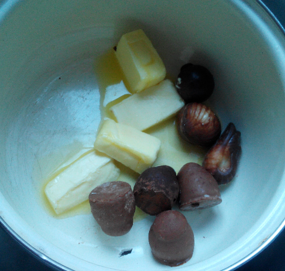 巧克力!我喜欢我喜欢我超级喜欢!融化了能有那么多吗?看上去半盆呢。只有那么几小块。