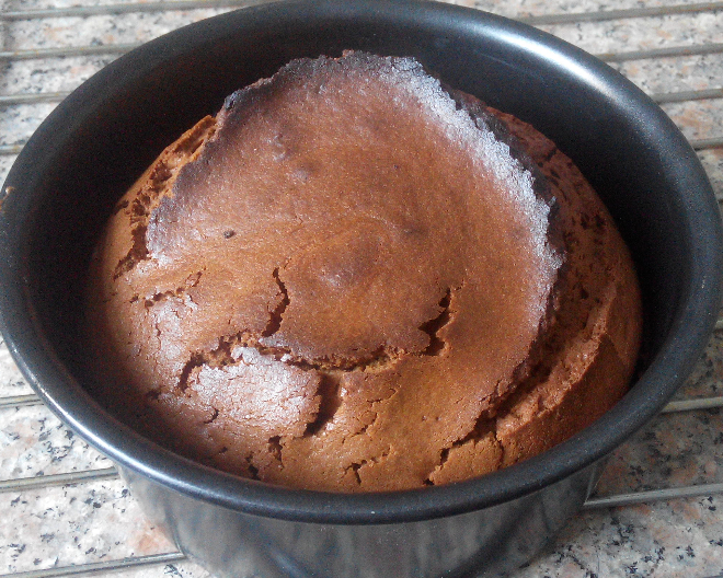 之前看到有个美食活动是做巧克力蛋糕的,我看到方法也不难,于是在做这个蛋糕时,找了他们活动的方子来学习。不过看的时候,发现有些写漏的地方,于是向他们询问。后来那里的工作人员又给我一个君之的原方子,原来他们也是参照这个来做的,所以我这个方子,其实来源还是君之的呢!有兴趣的可以搜下原方来看。 下面,我来介绍一下我的操作吧! 材料: 黑巧克力:90克(据说巧克力的品质越好,蛋糕的味道越好,正好我家里有进口的黑巧克力,正愁没人吃呢); 细砂糖:40克+20克(实践结果,这个糖的份量对于我们来说甜了点,下次我会考虑减糖量); 黄油:45克; 淡奶油:70克; 牛奶:65克; 鸡蛋:一个(50克左右的); 低筋面粉:140克; 泡打粉:3.75ML 小苏打:1.25ML 做法: ![]() 黑巧克力加黄油隔水加热到溶化。 ![]() 这是溶化后的效果。 再加入40克砂糖,70克淡奶油,65克牛奶,搅拌均匀。![]() 这是搅拌好后的状态。 ![]() 将蛋清与蛋黄分离,蛋黄加入巧克力液中。 将140克低筋面粉和3.75ML的泡打粉、1.25ML小苏打混合后筛入巧克力液中,搅拌成面糊,注意不可过度搅拌哦。 这张图是我刚搅拌的时候照的,还没搅拌好,后面没拍了。 ![]() 蛋清加糖打发到湿性发泡,再加入到巧克力面糊中,搅拌均匀。 ![]() 6寸的蛋糕模具中抹上黄油防粘,将巧克力蛋糊倒入模具中,将表面抹平。再放入预热的烤箱185度烤35分钟,这是原方的烤的温度,我用190度左右,烤了差不多四十分钟,这个要依个人的烤箱来看情况。方子里说烤到蛋糕完全膨出,用牙签插进去没有残留物沾在牙签就是表示熟了。 ![]() 烤好的蛋。哈哈,它笑得有点诡异。 我看过那个美食活动上的蛋糕的图片,这款蛋糕就是会开裂的。我想,这虽然不美观,但也是成功了吧! 君之的方子还介绍了后面的装饰,把这个蛋糕弄得很漂亮。而我老公不喜欢吃奶油,所以我就懒得装饰,就让这个蛋糕,用它最原始的面貌来面对吧! ![]() 君之提醒,要切得平整,最好是先冷藏几个小时后再切,而且每切完一刀都要把刀的表面擦干净,这样切出来的蛋糕才平整好看。我要求不高,只要切出来好吃就行,所以就粗鲁地切了,看起来确实不好看呀!不过,经常品尝,真的是美味!我平时也不喜欢吃巧克力,但对这个蛋糕,真的是回味无穷。连不爱吃甜食的老公,对这个蛋糕也是赞不绝口。看来,我找到了消耗巧克力的好办法了呢! 本作品未经作者许可不得转载,转载请征求作者意见。擅自转载使用,将保留追究其法律责任的权利! 评分记录