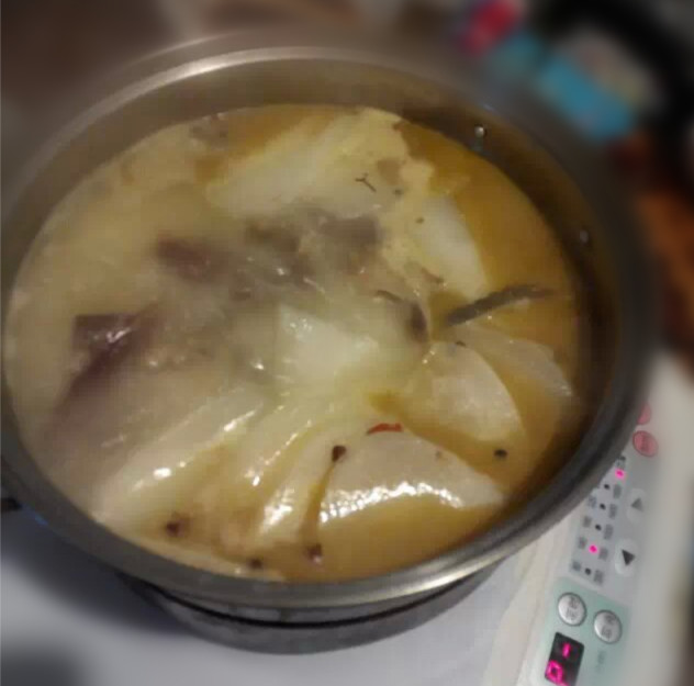 ![]() 今天是冬至,相信大家都已经知道有关于冬至在怎么回事了,我就不多说了,话说记得我还曾经有本关于对于冬至的绘本,里面就专门讲了冬至吃饺子的习俗,其实应该是说每个地方不同,习俗也是不一样的。我们这里一般是说冬至那天吃羊肉汤锅,这个冬天就不怕冷了,虽然好像没这么夸张,但吃羊肉汤锅始终给人的感觉是很暖和的。 在这一天,我们这里很多的羊肉馆子的生意是特别的火爆,很多都要提前去预定的。我们不喜欢去凑这些热闹,觉得在家里面就已经很暖和,不想出去吃。虽然今天下午有事情出去了,而且老公也给我打了电话,也是想叫我去买这个羊肉的,说是在家自己做来吃,因为罐罐今天生病,没去上学,我带着他在外面就不敢待太久,怕他受不了,还是带着他先回家了。 ![]() 结果老公还是很执着的在晚上把羊肉买回来了,说是人家正在准备收摊了呢。老公一回来就赶紧把那些准备好,连羊毛肚,羊肉什么的都还是整块的,都要自己却小块才行,看来人家卖羊肉的是在准备收工了,不然平时可是切好了放在打盘子里面的,好让顾客来挑选的。呵呵 老公直接把羊毛肚切成一小根一根的,然后放在锅里面加水烧一下,去腥味,然后再放在铁锅里面炒一下,再把买时配的羊肉汤倒在锅里面熬一会。 ![]() 这是最开始时才下锅时,当时总觉得好像不太对劲 ![]() 现在才明白是那里不对劲了,原来是羊肉汤的颜色,现在熬了一会就成这种乳白色了 ![]() 配送是青辣椒,自己再加了点豆腐乳里面的红油,如果有那种白味的豆腐乳,配在调料里面是最好吃的,可惜我家的豆腐乳是朋友送的红油的豆腐乳,也就不能搭配在里面,只能用点里面的油了,一样很好吃的 ![]() 这碗就是专门的豆腐乳里面的红油,吃起来又是另外一种口味 ![]() 在铁锅里面熬一会就换成平底锅了,直接就在电磁炉上熬着吃了,这样就可以吃到热气腾腾,香喷喷的羊肉汤锅了 ![]() 当然,吃这个可是不能少喝羊肉汤的,必须先来上一碗,很鲜,很好喝,也很暖和的 ![]() 羊肉,羊毛肚,羊杂碎,粘上点调料,有一点点辣,但特别的好吃 ![]() 另外还可以自己加其它的小菜在里面,就像吃火锅一样菜品,都是一样很好吃的。 ![]() 怎样,看起来就很暖和吧,反正我是连鼻子都吃得红通通的,整个身子都暖和了,呵呵。 今天冬至,亲们吃的什么 本作品未经作者许可不得转载,转载请征求作者意见。擅自转载使用,将保留追究其法律责任的权利!