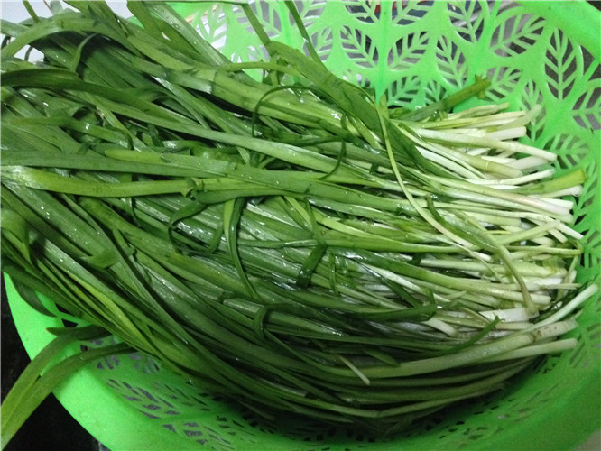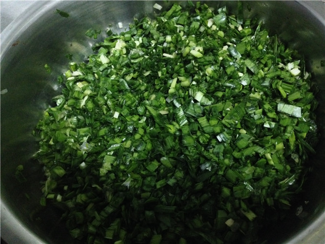 其实韭菜最费事儿的就是择菜了,还好我买的韭菜个头比较大,没有太多的杂质,所以择菜也自然快了些!洗韭菜就很重要,最少要洗三遍,而且要重点洗根部,韭菜叶是万万不能来回搓洗的,否则就容易烂掉!