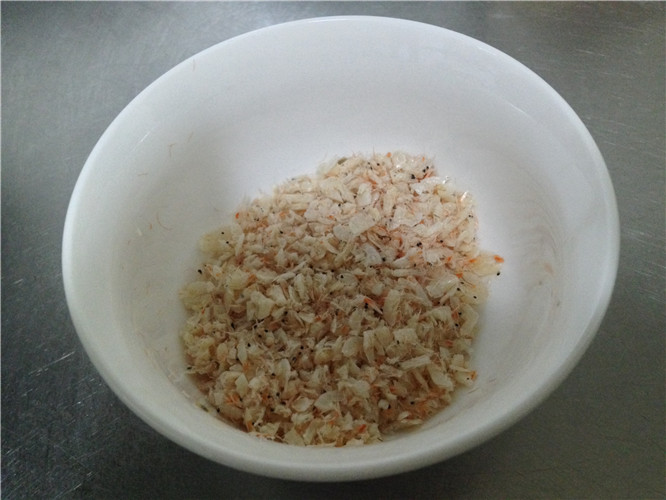 准备一点儿小虾米,切碎,稍后放韭菜里提提鲜味儿