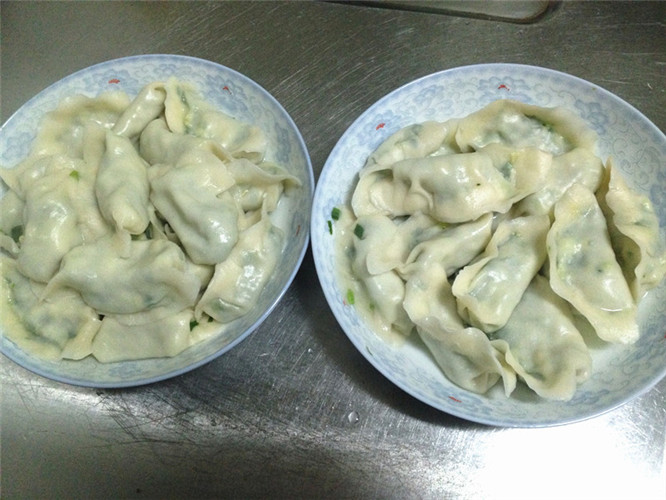 快包完的时候锅里的水已经烧开了,赶紧下饺子了,家里的大吃货和小吃货哦已经等不及了,要饿坏了!韭菜鸡蛋的饺子开锅就得捞,否则容易煮过!