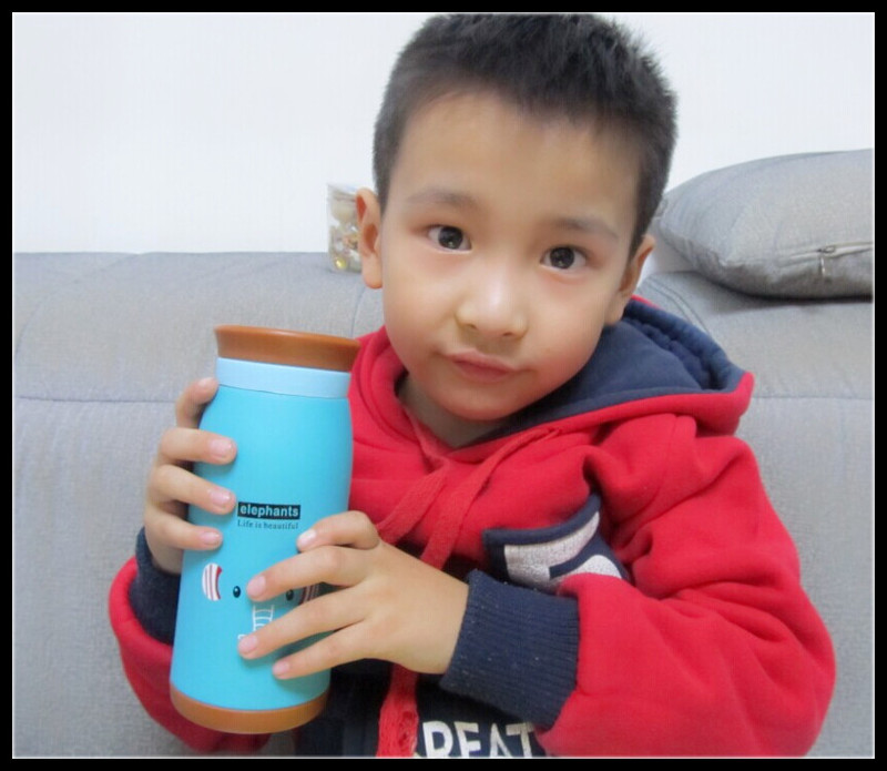 当时这是专门买给Aric的保温杯,特地选了蓝色小象的图案,350毫升量也不小。收到货后Aric就喜欢上了这个杯子,不过他很少用得到,幼儿园里有杯子,家里有杯子,出门有水壶,结果这个保温杯就一直搁置在茶几下,直到今天被老公发现,问有人用这个杯子吗?Aric摇摇头,我也摇摇头,老公笑了,“那就是我的了!”然后我无声没意见,Aric也点点头,杯子的归属就这样确定了。