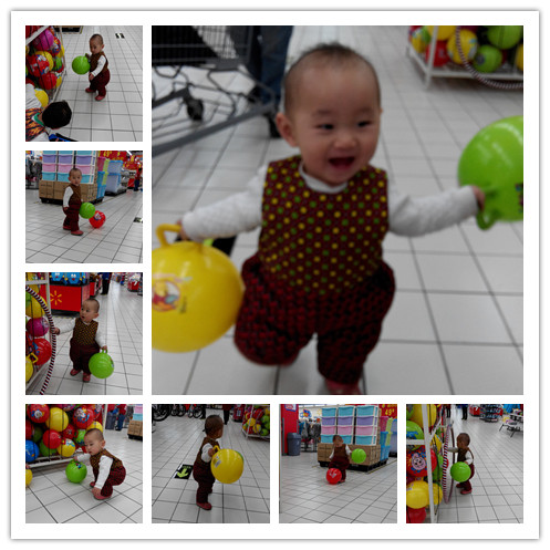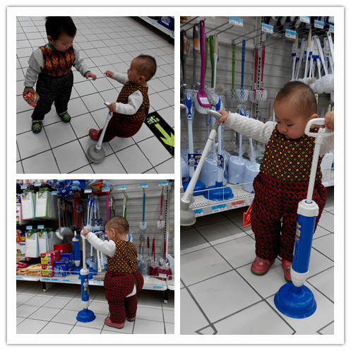 以前来超市的时候我都不让嘉嘉下来跑,也可能是我一直进的超市人特别多,怕碰到他了,还有就是怕他把东西给人家弄坏了,所以就一直让他在车子上坐着,这样我即放心又省心,但是这次嘉嘉也坐了,但是坐了会看到球了说什么也不坐了,正好这个超市人少就让他跑着玩吧。 刚开始的时候是哥哥给嘉嘉拿了一个球,嘉嘉感觉不过瘾,自己又想去再拿一个球,只是他自己拿不出来,看到呼啦圈还想拿那个,只是那个在一起捆着,求助给他拿了一个球,自己拿着两个球就开始跑,他还怕别人给他要了,这小不点啊,看到没有人来管他,自己就放下球在那里玩了,今天就有可让嘉嘉把球玩够,直到他一直拿着球打我,然后再扔掉的时候才不玩了。 ![]() 嘉嘉又看到一个新鲜的东西,嘻嘻,盼盼在家里也喜欢玩这个了,没有想到嘉嘉也喜欢玩这个,拿到手中就开始玩,而且还要拿着人家东西要走了,嘉嘉可能感觉这个东西挺好的吧,并不知道这是干什么的。 ![]() 结果被哥哥给拦下来了,嘉嘉要躲开哥哥不让哥哥给他要了,结果也没有躲开,哥哥还是给嘉嘉要了,嘉嘉那个无助啊,最后选择是回来再重新拿一个。 ![]() 这次我要拿两个,拿一个更高级的,哥哥怕嘉嘉给人家弄坏,结果又给要了,嘉嘉气啊,坐在地上,知道我们告诉哥哥说没事让嘉嘉玩吧,这嘉嘉才又可以去玩了,而且哥哥还陪着他玩,直到他们把这个也玩的不想玩,我们才离开的。 ![]() 看哥哥又要给我要了,我没有躲开,被哥哥要了,我就又重新去拿一个,这次我要拿两个玩。