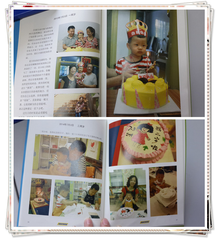 这本照片书制作起来非常方便,只需要上传一些照片和抒发自己的真情实感用文字记录下来,便可以把照片和文字通过一键成书浏览。它可以分为多个时光流,每一个时光流一次最多只能上传9张照片,然后在“时光标题”里输入自己所命名的文字,再在“记录时光”里输入自己想说的话,再选择时光流的名称,再点“发布”,那么完整的一个小时光流再通过“一键成书”就可以像书一样浏览了。 ![]() 由于时光浏影的大力支持,竟然可以足足制作100页之多的照片书,这无疑是给宝妈们更多的福利去寻找宝贝的素材制做。我想了一下,宝贝到2015年1月3号正好二岁半整了,何不通过这个平台送给她一份元旦礼物呢,而且如此特别,也值得永久纪念,于是把宝贝从出生到二岁半的照片从头至尾翻看了一下,把书的名字取为0-2岁半的蜕变,真是太欣喜了。当时不知道制作期限已经延期,就每天晚上下班后紧锣密鼓地弄到12点左右,由于家里电脑网速的原因,在传照片的时候非常慢,在饭前还点了九张照片上传,可饭后甚至更长的时候也不见上传成功,当时心那个急啊,更别说有太多的文字介入了,只想快点制作成功,快到收到,在宝贝元旦的时候送上这份独特的礼物。 ![]() ![]() 在宝贝二岁半接近尾声的时候足足做了98页,看来晚光赋予我的权利我一点都没浪费啊。我一共做了26个小时光流,每个时光流里都或多或少的配有文字,从宝贝出生,到她的三个月,六个月,八个月,一周岁、二周岁等等,只要是值得纪念的时间都在这本书里留下了印迹。我想如果有时间充足的话会注入更多的文字进去,因为每一张照片的背后都是我亲历亲证的成果,只有文字才能给它定格在永恒的记忆里。 ![]() ![]() ![]() ![]() ![]() 时光流影那个群里的工作人员,也非常有耐性地解答了我一些问题。当整本书结束的时候我需要选择一张照片作为封面,当时真不知道怎么编辑,是那个群的群主告诉我方法,我照着方法做好了封面,但当时由于经验不足,选择了照片在中间,中间正好在宝贝脸的旁边有几个字,她还特意告诉我这样会挡孩子的脸,建议我换一个封面模式,在她的提示下我把书名改到了正下方,这样看上去就完美了。 我大概是12月25号提交上去的,当他们做好的时候还通过QQ告诉我已发货,就在2014年最后一天的时候我如约收到了这本亲手制作具有纪念意义的照片书,速度也是相当之快,当时心情真是喜不胜收,宝贝最好的亲年礼物就这样如愿诞生,我爱你们——地带和时光流影! 本作品未经作者许可不得转载,转载请征求作者意见。擅自转载使用,将保留追究其法律责任的权利! |