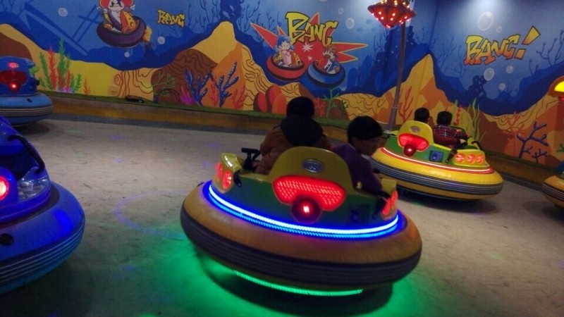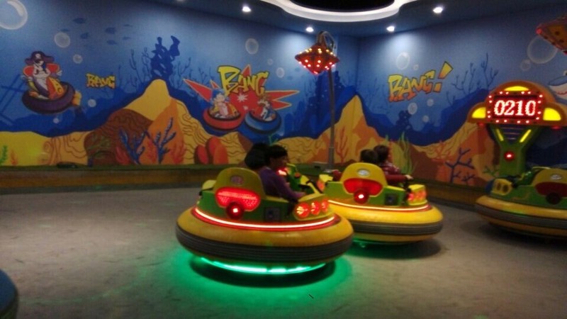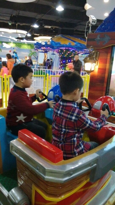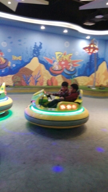 一开始开碰碰车的人还是很多的,还没有结束,有些孩子就不愿意开了,家长就带着孩子出去了。最后剩下了点点小奇一组,还有一对小胖子一组,两辆车在里面开来开去,还要互相撞上,点点和小奇一开始不会开,就在原地转圈圈,后来会开了,开得挺快,也很好玩。另外一对孩子看起来比点点他们还大,不会开,一直就在原地转圈,没有前进。这个碰碰车对于孩子的方向感的训练还是很有好处的。