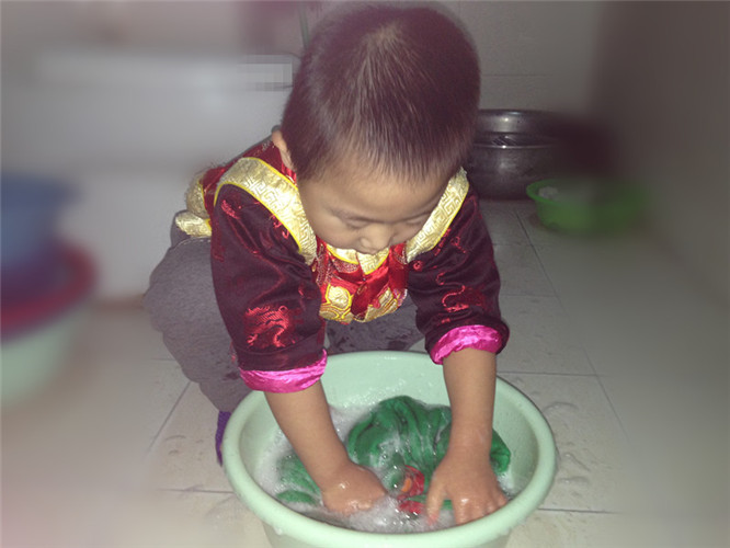 自己洗衣服---洗衣服这件事情,算是今年一个很大的收获,也是昊昊最大的进步之一,而且这一洗,便一发不可收拾,不止一次,不止小袜子,连大件都洗上了,有次一连洗了四五件大件衣服,让我们一度感到很是吃惊!虽然每次弄的地上泡沫四溢,虽然衣服有时候会洗不干净,虽然小手略显笨拙,不过,爱劳动,享受劳动带来的乐趣不就是我们所真正期盼的么!