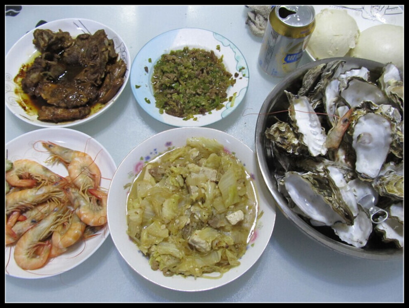 吃着海鲜,老公申请喝瓶啤酒,我同意了,然后父子俩坐在餐桌前,一个吃海蛎子,一个吃虾,吃的津津有味。我老老实实的吃着我的炖白菜,偶尔吃点虾,倒也很滋润。事实证明,海鲜还得吃海里现出来的,像我们平时买的都是进货来,然后冷冻起来,这味道真是差了很多。等回头有空把鲅鱼做了,尝尝和我平时做的有什么区别吧。 ![]() 还没洗的海蛎子 ![]() 鲅鱼,冷冻了起来回头再做 ![]() 对虾,比较下,所以先吃了大个的海虾 ![]() 老公在刷海蛎子,我不太敢弄,怕被咬,不过老公说海蛎子早死了,哈哈 ![]() 这是煮过的海蛎子,开口后煮了5分钟出锅的 ![]() 煮的海虾,肉质很不错,挺好吃的 ![]() 有荤有素,有海鲜也有鸡翅,嘻嘻,老公忍不住喝了瓶啤酒,这一大盆的海蛎子基本上都被老公吃了。 ![]() 本作品未经作者许可不得转载,转载请征求作者意见。擅自转载使用,将保留追究其法律责任的权利! 评分记录
