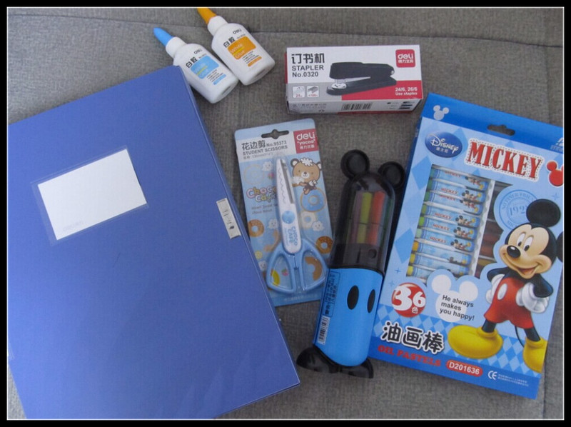 前几天在论坛看到有姐妹买了一套迪士尼的蜡笔,感觉真是太不错了。询问了地址以后就迫不及待的去看蜡笔,只要9.9元,必须得给Aric买一套。不过当时也没细看,所以只购买了一套,如果早知道这么好,就多买两套了。Aric现在用蜡笔真的很厉害,幼儿园里的画画课需要蜡笔,平时在班里也有美术的绘画,而且回家他也喜欢没事拿笔画画,加上他又总丢蜡笔,所以就得常常购买了。 如果只下单蜡笔又觉得浪费了,就看了看其他的东西。老公的一些文件用的文件夹已经满了,所以买了一个新的档案盒,可以给他放一些档案,这个用了7.9元。还有订书机也是,9.8元购买,平时老公用订书机的次数也很多,他倒是有,不过这是给Aric买的。因为Aric的作业本、画本总是被撕坏,或许质量不太好,也或许小朋友们喜欢撕纸,而且别的小朋友没有画本了也从Aric这里撕,所以我都给他订起来,防止撕坏。