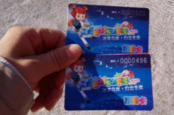 第二个体验的是雪圈广场,这个需要先去服务台办卡,办了卡才能来租借雪圈,然后一个卡免费玩半个小时,超过时间需要另外交费,先来说说这个卡,办卡的时候看到很慢因为需要给每个办卡的人解释,一个卡先交押金100元,需要消费的娱乐或者饮食等花费都是不能用现金消费的,都需要用卡,如果消费了扣除消费金额,没消费的退还押金100元,办卡容易退卡很慢,但是只有办了这个卡才能去免费体验雪圈,我们退卡的时候发现原来交押金100元,后来变成了200元,一定要注意一个卡只能借一个雪圈,室外还有一个可以玩这个的地方,那里租用雪圈不用排队,所以最好先办两个卡。