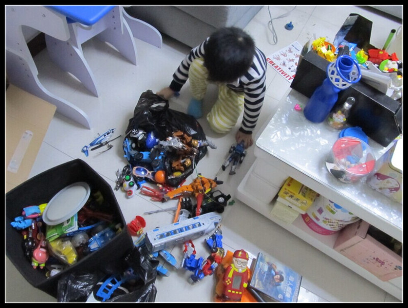 昨晚被我发现了一件事情,在我离开客厅的时间里,Aric会打开爸爸的电脑偷偷玩游戏,不过他没有打开声音。当听到我来客厅的声音,他会立刻把电脑扣上,然后装成看电视的样子。当时就把我气坏了,我说要把游戏删掉,以后不准玩电脑和手机了。Aric被我批评的哭了,问”不玩电脑和手机干什么?“我说你可以玩玩具,或者看书,或者写字,偶尔看看动画片。Aric摇头哭着说:“玩具都没有好玩的了,我都玩过了啊,看书写字太累了。” 也不知道昨晚的我怎么就那么倔,非要给Aric改改这个玩游戏的臭毛病。把他的玩具全部扔到了一个箱子里,准备全部扔掉。Aric边哭边看着一个一个玩具被扔掉说:“这都是我的啊,你扔掉了我就什么都没有了。”我说你不是说玩具没有好玩的了吗,我扔掉一样的。Aric不敢反驳我,只是没看到一个玩具,就心痛的喊一声“我的玩具啊!”背对着Aric,我实在忍不住想笑了,纯粹被气乐的,老虎不发威,他还真当我是病猫了啊!