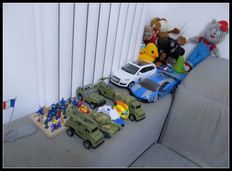 最后我俩沟通了好大一会,我问游戏还玩吗?Aric说“我不玩了,妈妈允许我玩我才玩。”我问:“玩具能玩吗?”Aric回答:“能玩,它们都是我的宝贝。”我问:电视能看吗?学习机能学吗?Aric回答:“能,我一定听妈妈的话。”我再问:那以后看书和写字呢?Aric回答:“我不会再偷懒了,一定每天都看书和写字,写的漂漂亮亮的。”我问他真的能做到吗?如果不能做到怎么办?Aric立刻说:“做不到妈妈就把我的玩具扔掉,只要给我留一个两个玩就行。” 接下来我们一起整理玩具,把不要的玩具单独放在一个箱子里,准备送给门卫爷爷家的小朋友玩。坏的玩具全部扔到垃圾桶,常玩的玩具放在电视柜前,而沙发的扶手上,只放几个最喜欢的。Aric因为整理玩具而很快高兴了起来,恢复笑颜的他整理起来很兴奋,也很有激情。大概一个多小时,在Aric的不舍与挑挑拣拣中,我们整理好了玩具。看到整齐的沙发扶手和电视柜,Aric也觉得这样很干净,很整洁。虽然被批评了,但是Aric也从中吸取了教训,相信他以后一定改正缺点。 ![]() 沙发扶手摆放了Aric常玩的一些玩具。 ![]() 其中这些小人儿,也找到了他们的归属。 ![]() 电视柜上摆放了Aric喜欢的玩具。 ![]() 不再哭泣,也改正缺点,既然买了这些玩具,就要善待他们,收藏着不玩,可不是个明智的选择啊。