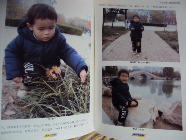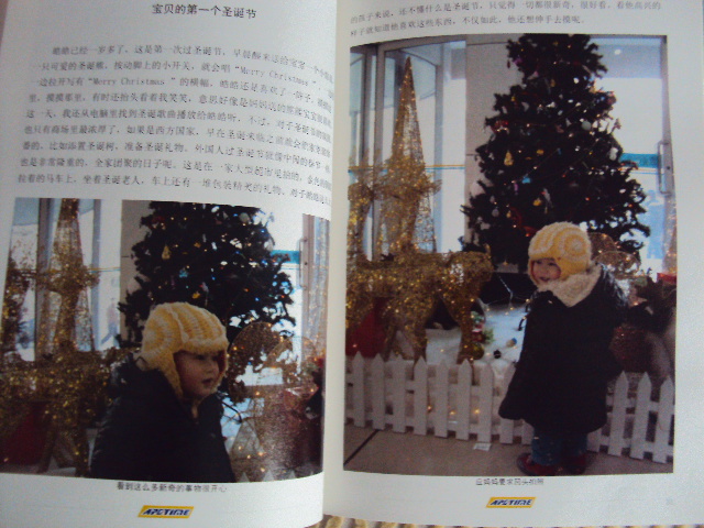 孩子在学校里老师也有给拍过几张照片呢,不过都是用手机拍的,我也给孩子排了上去,排的时候我就估计这几张出来会很模糊,不过这些也是孩子的成长经历,出来的效果还行,只是稍有点儿模糊,比我之前想象的要好。事实证明我把这些照片排上是对的,因为今天晚上孩子又主动的欣赏起他的照片书来,看到这一部分的时候,显的格外高兴,又跟我讲他元旦晚会上唱了《小苹果》的事情呢呢!时光流影,让幸福与辛酸都定格在这本书里,让我有幸记录下孩子成长的点滴,让我写下我对孩子满满的爱,所以我给这本书取名《宝贝,我的爱》。虽然排书的时候费力,但当我看到成书时,才觉得费点力是值得的,一分耕耘,一分收获,这一张张照片,一段段文字,都凝结了我对孩子最真挚的爱。