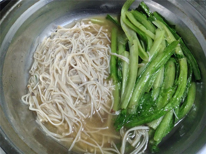 用骨汤来炖金针菇和油麦菜太美味了 |