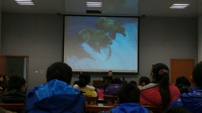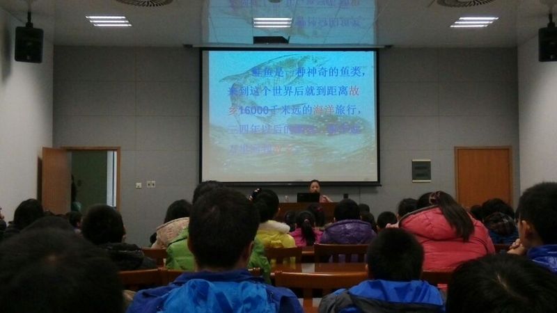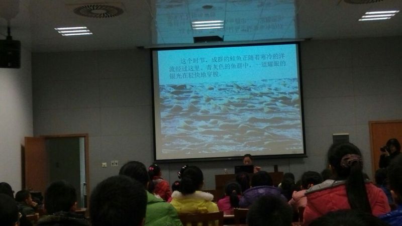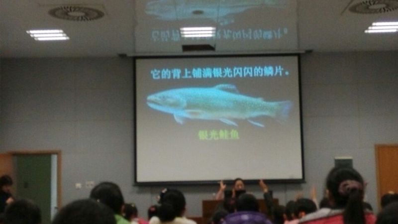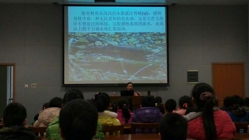 今天我们没有在幼儿绘本馆报名报到听故事的名额,幸好上次我拿了一张少儿馆的一张听故事的票,这样我们还是可以去听故事了。在少儿馆听故事和在幼儿馆听故事不一样,这里听故事就要小朋友自己思考问题,老师提问以后要知道举手回答问题,并且老师也没有按照故事情节讲故事,而是着重几个片段讲解,让孩子们悟出其中的道理。 鲑鱼想要干什么,安度眩这位老人观察了鲑鱼三十年了,这个标题中着重把冲字放大,主要讲为什么冲怎样冲,最后的结果是什么。