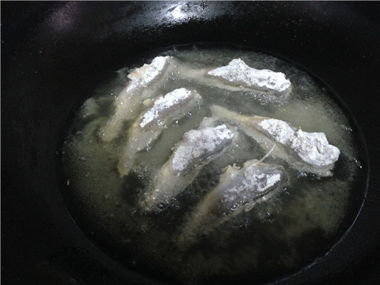 火一定要小,不然很容易就炸糊,宁愿慢三分,不抢那一秒啊,炸鱼也是这个道理!所以我一般都是小火慢工,这样出来的鱼是不会糊的!