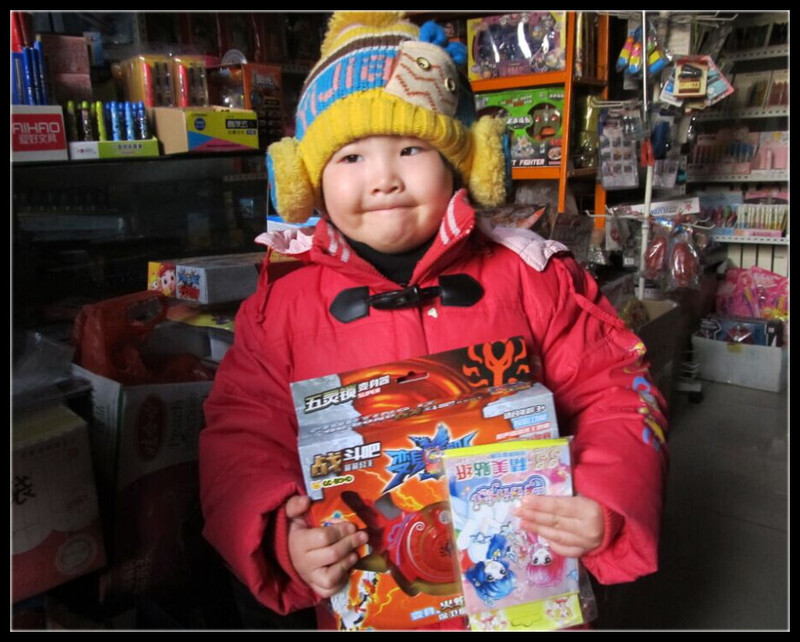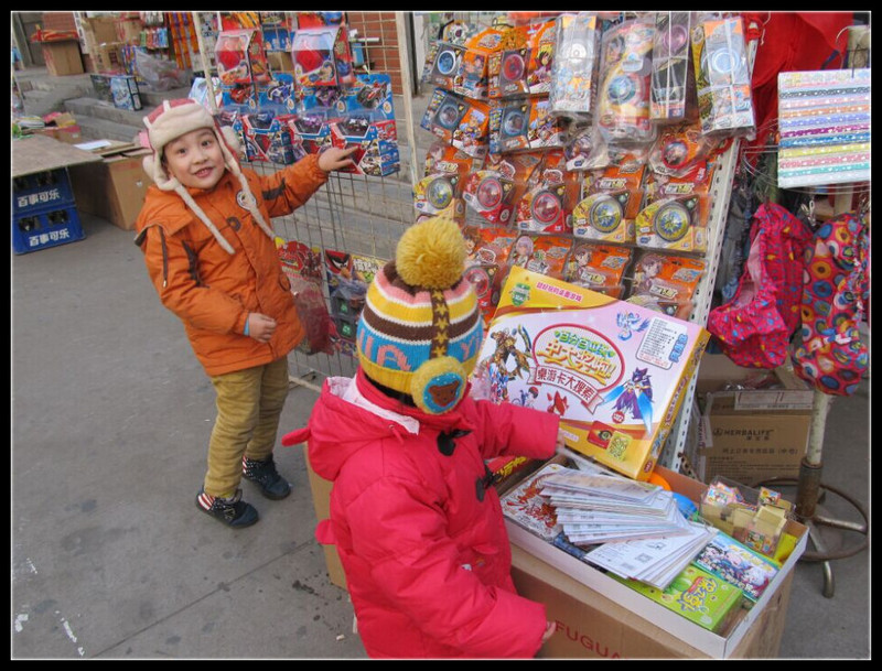 最后Aric和萱萱选了两个变身为猪猪侠的手环,不过比较大。萱萱选的是变身为火焰鹤的红色手环,Aric选的是变身为铁拳虎的黄色手环。选完付钱的时候,萱萱突然又要了一包贴纸。Aric一看妹妹有了,也选了一包奥特曼的贴纸。无语,还真得一人一个,哦不对,是一人两个啊,少一个都不行呢。不过最终买完了,兄妹俩也满足了,这回可以乖乖回家玩了。只是在家里我快被吵死了,那变身的手环竟然还会唱歌说话。 ![]() 兄妹俩开始挑选玩具 ![]() Aric看中的都是比较大型的玩具,不过这次只能选小的哦。 ![]() 萱萱是变身火焰鹤的手环加贴纸。 ![]() Aric这个猪猪侠迷肯定选的是铁拳虎啦。