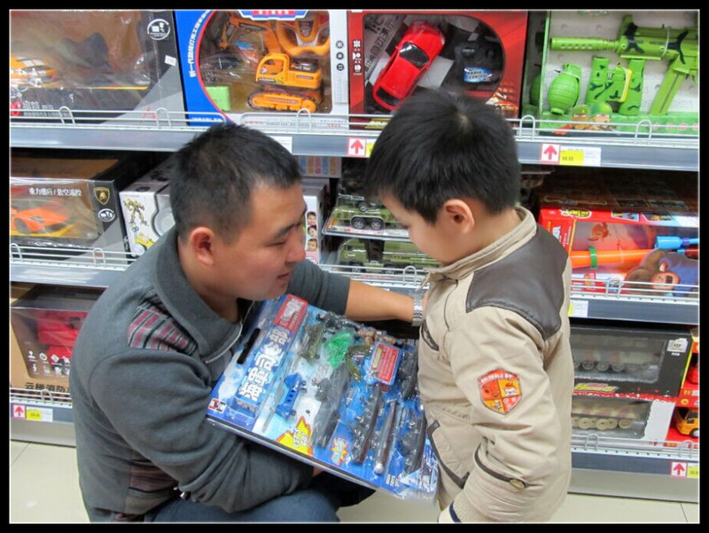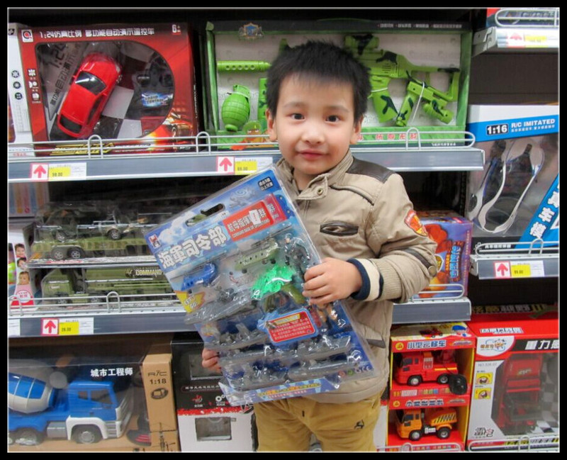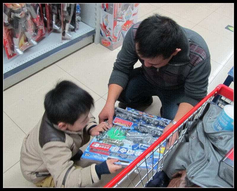 突然发现最近逛超市的次数实在太多了,每次去都是大包小包的回来,但是在这样一个冬季里,好像也就商场、超市比较适合去玩,不冷,还能收获不少,虽然其中就有Aric非要买的玩具。上次来的时候Aric买了一套陆军司令部,虽然是新宠,但是却非常喜欢。在这次来之前Aric就说想要一套海军司令部,和那套陆军司令部凑成一套,平时玩陆军司令部,洗澡的时候玩海军司令部,还想的挺丰满的。 前几天Aric回奶奶家,奶奶给了Aric100块钱,Aric竟然没有告诉我,这事只有老公和他知道。月底时交牛奶钱77.5元,老公才把这钱给我,我说既然是奶奶给你买牛奶的钱,那这七十多就得你出了。最后留下了Aric70元,我还给他添了7.5,剩下的30元任由Aric支配,Aric决定买海军司令部。不过这海军司令部的价格他肯定是不够的,最后借了爸爸的钱,凑够了买下了这套海军司令部。