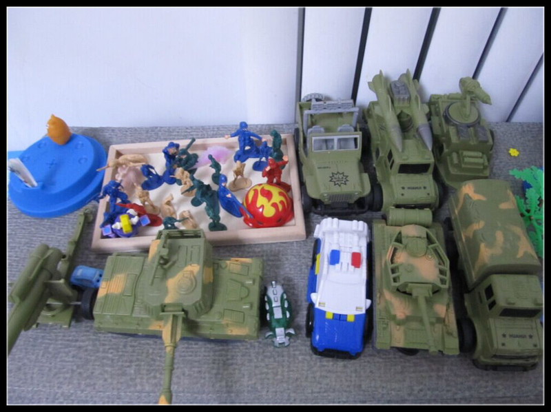 我们的作战简单的很,就是一人拿几个玩具,然后自己想作战计划,最后再对打,不过我是总输的,谁叫我没有男人的那种会玩的因子呢。而Aric很厉害哦,因为他总能想出很多有趣的作战计划,一会儿来个釜底抽薪,一会儿又来个引诱计划,不过他是不懂这些成语和意义的,这也让我们看到了Aric不一样的一面,足以说明平时的阅读是多么的有用了,因为Aric的作战计划总是那么的完美,很有兵法的效果。 玩完了,我申请休息,Aric大手一挥直接发话没问题,妈妈去休息,爸爸继续上场。直到我们夫妻俩都疲惫了,他才收了自己的玩具,一一摆好,然后问爸爸“我们什么时候洗澡啊?”爸爸无语了,貌似昨天刚洗完啊,只是昨天没有这些海军司令部的到来而已。这不来了适合洗澡时候玩的玩具了,Aric就迫不及待的想随时随地的玩起他的玩具来。没办法,老公只好乖乖的放水,准备和Aric去浴室继续战斗了。 ![]() Aric的陆军司令部 ![]() Aric的海军司令部成员 ![]() 做工还蛮精致的,放在水里发现原来真的不会沉呢。 ![]() 现在Aric可是把新玩具放在沙发上了,而旧玩具全部送回玩具箱,保持着沙发随时新玩具的到来,真晕啊。