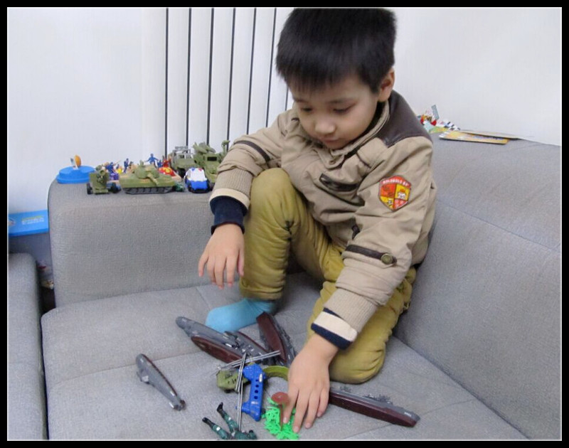 虽然总说不能再给Aric买玩具了,可是却总是忍不住会给他买,因为玩具能带给Aric很多的快乐,而且我也觉得就这么一个孩子,不宠他宠谁呢?也幸好Aric的性格不是那种傲娇、任性的,买玩具了他知道感恩,不买玩具他也不会太情绪化,而且现在他的玩具大部分都是他自己攒的零钱购买,于是我们也就纵容他了。前几天收拾了玩具箱,现在他沙发上的玩具倒是少了不少,不过来了新玩具,又要放不开了。 男孩都有点好战的性子,他这次选择的玩具叫做海军司令部,前几天买的是陆军司令部,带有什么装甲车、坦克车等等,而这次的海军司令部里带有潜水艇、鱼雷等等。我是不太懂这些的,但是老公却非常喜欢,父子俩总是窃窃私语的聊着他们的玩具,你两个、我两个,还不忘了给妈妈两个,然后一家三口玩着海军作战计划。当然了,Aric会先选择他喜欢的玩具,剩下的才是爸爸妈妈可以选择的。