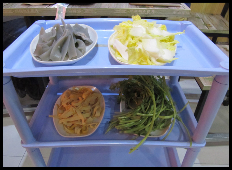 我们吃这些菜也是和鱼一样是用炭火烤好,然后给鱼一起装在盘子里慢慢吃的,这样更有味道些