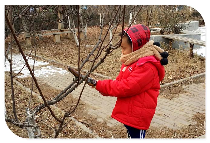 妈妈也给小家伙假定了一个故事情景。妈妈说一个叫谦的小伙子来到了一个村子里,小家伙拿着喜欢的玩具在果园里玩的时候,发现了一个奇怪的现象,这里的果树都生病了,原来是一种虫子搞的破坏,他们讲果树咬的很严重,好多果树也被虫子咬烂了,而消灭这种虫子需要一种特别的药水,就是要找到有松树的地方,摘好多的松树塔,然后将松树塔熬成水来喷射虫子就可以将虫子消灭光了,为了救治这些生病的果树,谦要开始寻找松树塔了.......在这样的故事情境铺垫下,谦很快入戏了,小家伙跑到了校园里有松树的地方!