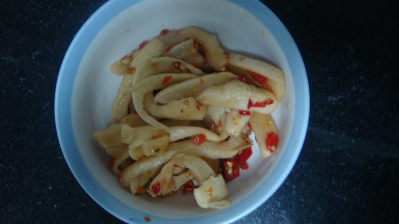 ![]() 丢了也可惜的,这些都是婆婆她们辛苦种来的,丢了说明我们不爱惜她们的劳动成果,自己父母的付出,总有些不忍心去丢了,哪怕不喜欢,有时会想着法子动利用! 我喜欢辣萝卜,每到这个季节,我们这里的人都会自己做的,因此,每个人都会做这个吧!我当然也会了! 把萝卜洗干净,切成条块,架在衣架子上,放在阳台风吹三四天,萝卜有些干了!这个由人的口味决定吧,干一点有嚼头,湿一点的容易酸,但吃过来有水份,嘣嘣脆,这是我最喜欢的,婆婆的喜欢干一点的! 然后放在一个瓶子里,加适量的盐,再加一些我们湖南的特产剁辣椒,拌匀,密封后!差不多一个星期以后就可以吃了! 看看我做的吧,颜色还可以,辣椒的红染上去 ,吃起来脆脆的带点点酸味和辣味,每天下班回到家,我在厨房做饭的时候,就不时的夹两块放口里,真带劲啊! 本作品未经作者许可不得转载,转载请征求作者意见。擅自转载使用,将保留追究其法律责任的权利! |