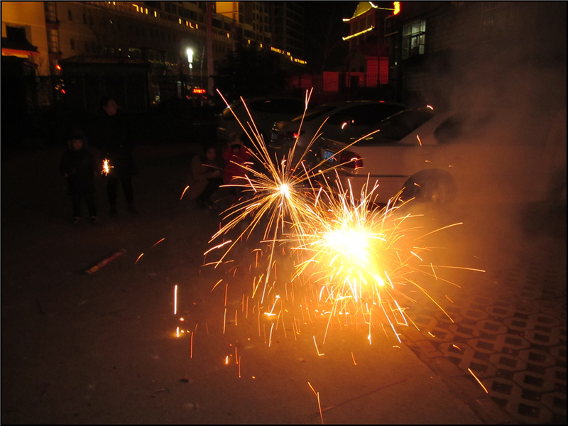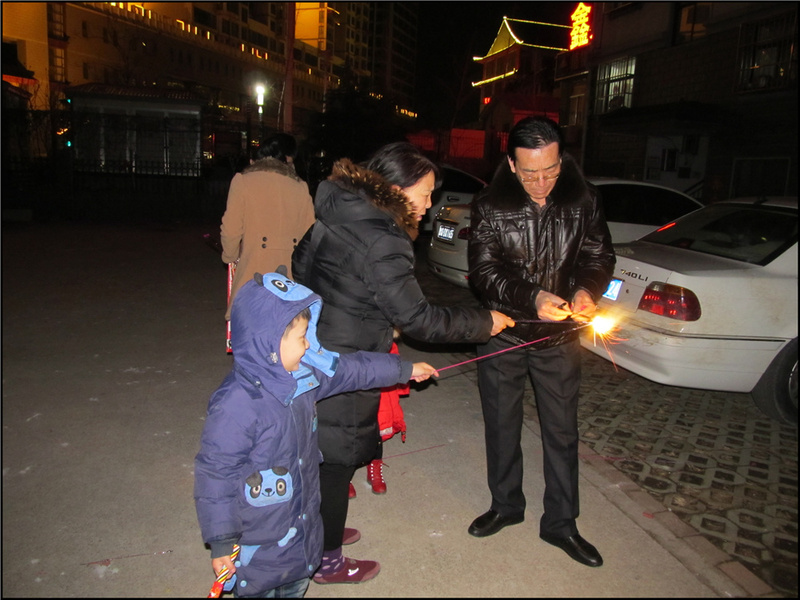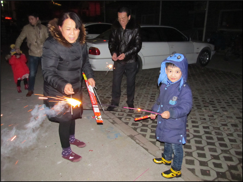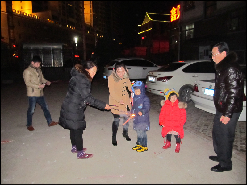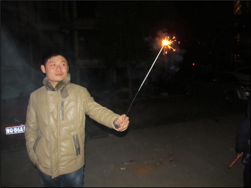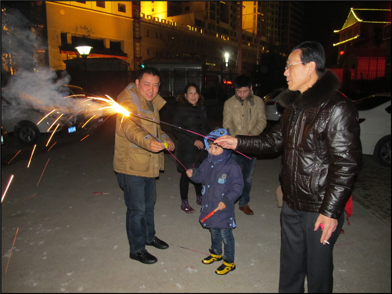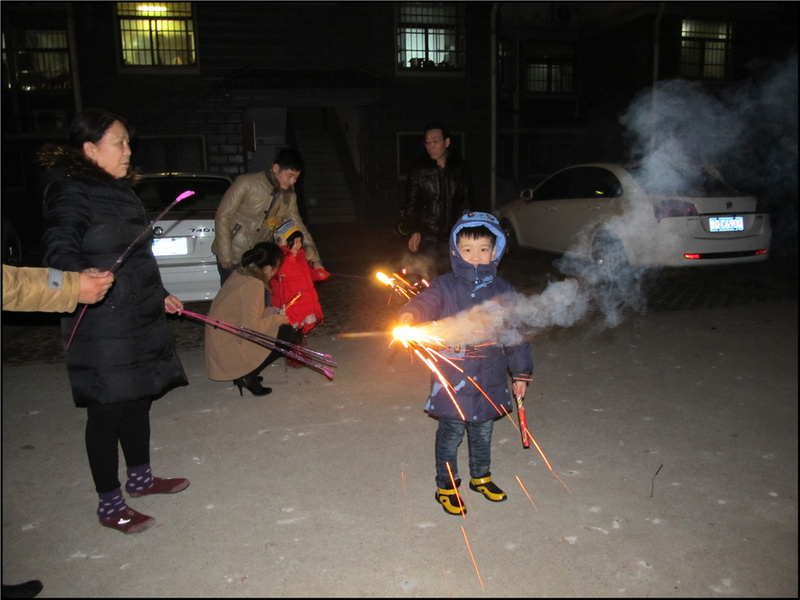 在婆婆家Aric也玩了,不过玩的是鞭炮而不是烟花,就是那种挂在大门外放的鞭炮,“噼里啪啦”的特别响。然后在放完了鞭炮后,小孩子就会去捡掉下来又没炸开的鞭炮。老公一直跟着Aric,找到以后,老公就会埋在土沙里,点着后“砰”的一声就炸了。这种是特别危险的,但是也让我回忆起小时候,也是这样玩的,去婆婆家的时候听了广播,就说到了大家小时候怎么玩的,还有人回应说放在牛粪里点炮仗,笑坏我了,而我们也不敢给Aric玩那种。 像这样的烟花就比较安全一些了,而且Aric还很注意,一般点着以后就把胳膊伸的远远的,带着羽绒服的帽子,就连羽绒服也穿上了旧的,他说他不希望把新衣服弄脏。哈,还真是个麻烦的小孩子啊。而放烟花也确实会让我们感到快乐,每一年的正月十五,在沂河边就有烟花盛会,特别热闹,Aric就特别爱看。这次买的还是少了一些,玩了一会就结束了,老爸说明天要多买点,因为妹妹家的孩子也要来住,这样就两个男孩玩了,会更热闹。 ![]() 老公也来放烟花 ![]() Aric放烟花特别会保护自己,戴着帽子,还护住了嘴巴,手也伸的长长的。 ![]() 大家一起来放烟花,甭管男女老少了。 ![]() 一个点着了,其他的也赶紧上来跟着点,不用再打火点烟花了。 ![]() 这一堆人围在一起点烟花呀 ![]() 老弟也来玩一把,小小的、长长的烟花比较吸引孩子们的注意力。 ![]() Aric选了特别长的来玩,短的就被舅舅拿走了。 ![]() 老弟放在地上的烟花,真是很漂亮啊。
