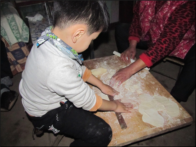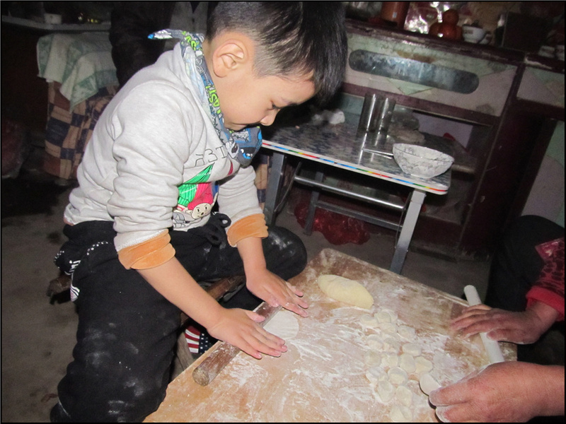 过年包饺子这已经是我们北方必备的美食活动了,一般婆家都是婆婆包饺子,我以前不会,老公更不会了,我们也很少帮忙。不过今年我学会了包水饺,所以就由我和婆婆一起动手来包水饺。Aric看到我动手,也好奇的过来说帮忙。老公看Aric都过来了,也不好意思一个人坐在旁边看手机,也主动走过来说和我一起包水饺,还说要和我比赛谁包的好看,谁包的最多,嘻嘻,结果真是拭目以待啊。 Aric给了婆婆一个很大很大的惊喜,因为Aric擀皮真的很圆很大啊。这也让我很意外,刚开始Aric只是觉得面好玩,后来发现奶奶擀皮更好玩,就把擀面杖要了过去说他也来擀皮。怀着好玩的心情,婆婆就把擀面杖给了Aric,刚开始Aric擀皮有些不在状态,每次都会问:“妈妈,是这个样子吗?”无论是婆婆还是老公告诉他好还是不好,他都会再询问我一遍,他希望做到我可以称赞的满意。