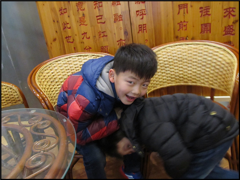 大年初二娘家聚会,众望所归的快乐时刻。而就在这一天,三个孩子也是难得的团聚。妹妹家的介然快7岁了,现在读小学一年级;我家的Aric同学5岁半,现在是中班的小朋友;弟弟家的萱萱还有2个月就4岁了,是个漂亮又可爱的小姑娘,也是倍受哥哥们宠爱的小宝贝。而这三个宝贝,都是我们一家人的最爱,也是我们快乐的源泉,更是我们幸福的见证。家有两老,还有三小,四个家庭11个人,再次相聚在一起。 介然越长越高了,继承了他爸爸的个头,长得又高又帅,只是身体有点差,经常会感冒。他的性格有些腼腆,但是在我们的面前他却很搞怪,虽然他是哥哥,可是却不是一个会关心弟弟和妹妹的哥哥,有些霸道,很有独生子的特性。他总和Aric打打闹闹的,却不会去欺负妹妹。所以他还是个我们都很喜欢的小哥哥,也是我这个姑妈最疼爱的宝贝。希望新的一年,介然可以身体壮壮,越来越帅。对了,他还有个好消息呢,今年他收获了三张奖状,是个优秀的小学生哦。