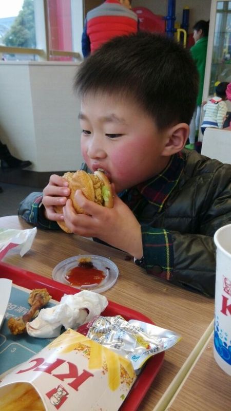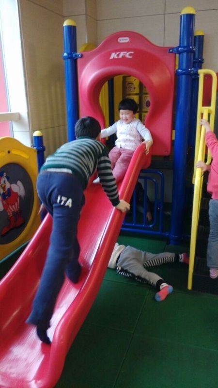 新年第一次吃肯德基,玩滑滑梯